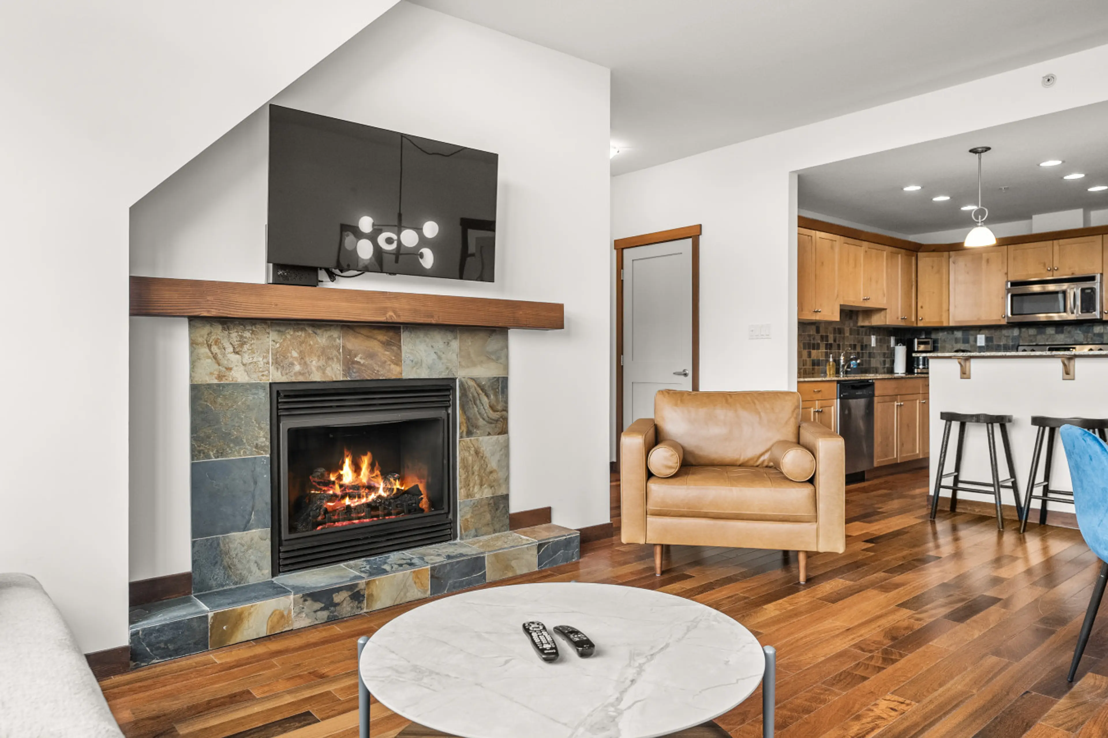 - Enjoy mountain views from the private balcony, complete with a BBQ for grilling - Relax by the gas fireplace after a day of exploring the Rockies - Fully stocked kitchen with modern appliances, including a dishwasher and fridge - Located just right in downtown Canmore and 15 minutes to Banff - B...
